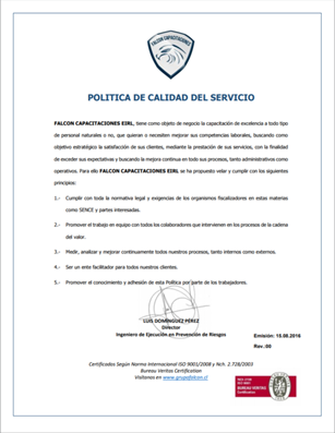 Falcon Capacitaciones, es parte del Grupo FALCON con más de 4 años de experiencia en el mercado, donde ha realizado variados cursos de formación de personal a nivel regional, somos una empresa creada a partir de la necesidad de formar y capacitar con tecnologías, profesionalismo, dedicación y formalidad al personal de empresas, instituciones públicas y privadas, condominios, edificios y personas independientes. Basada en una estructura de Sistema de Gestión de Calidad integral, donde todos nuestros procesos se controlan y se mejoran continuamente